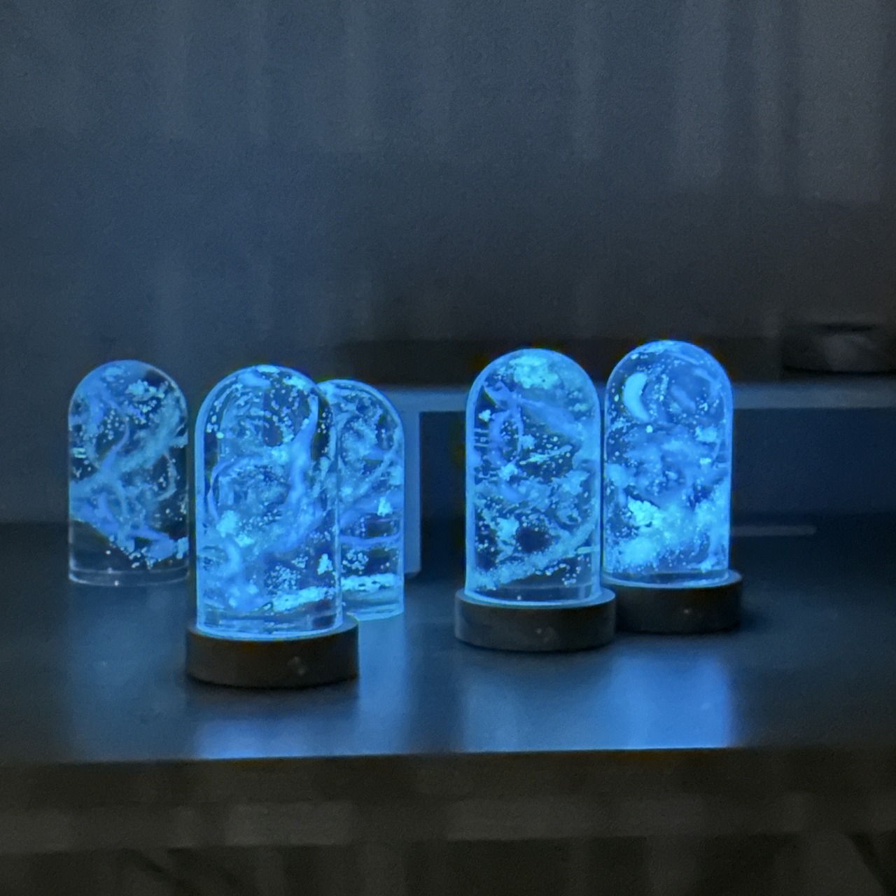 ※LED台座はこちらのページ(https://nickelxp.handcrafted.jp/items/92814062 )より追加していただく形となります。台座がなくても部屋の明かりなどで蓄光させることは可能です。