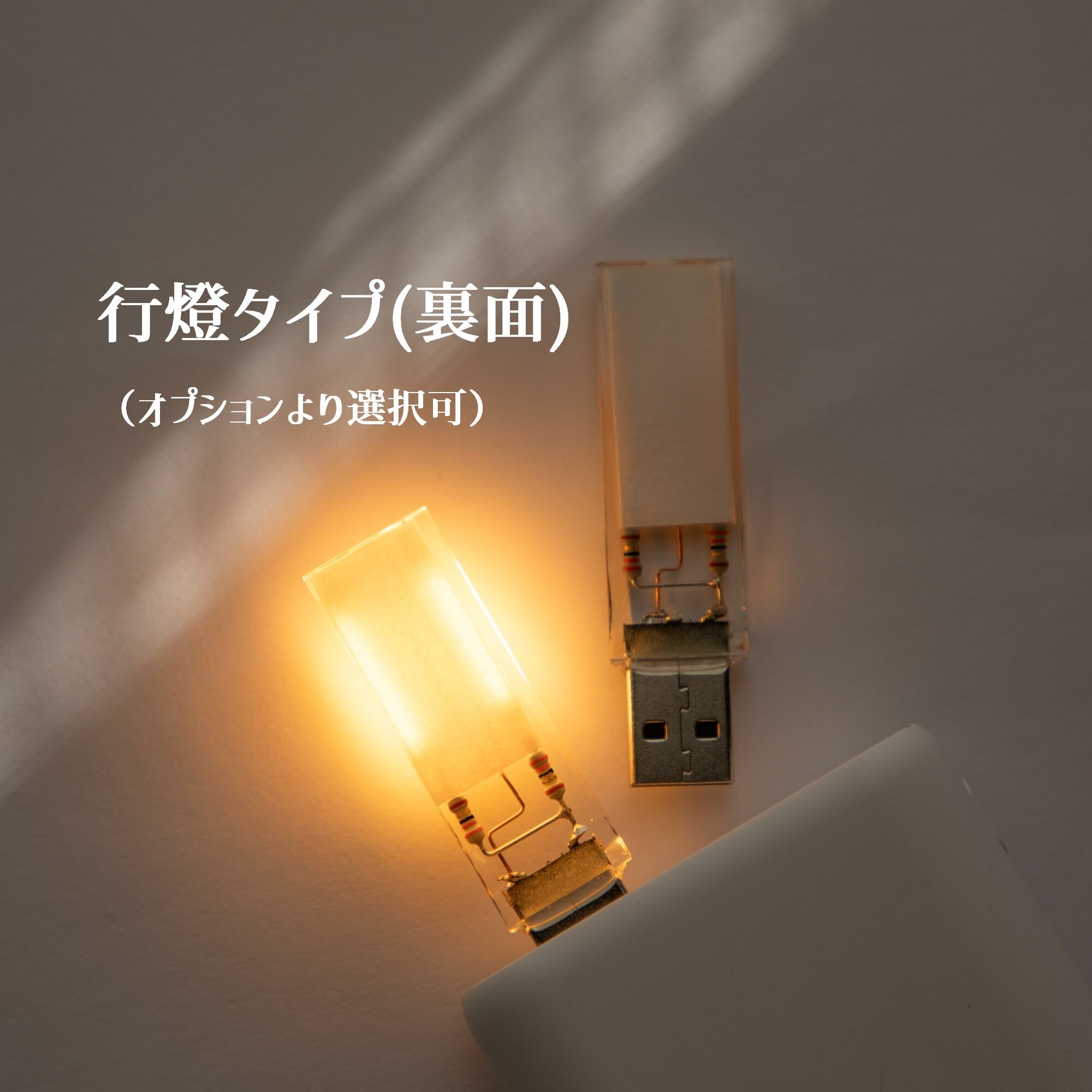 オプションでは、本作をより便利に使うためのアタッチメントとして、「直角アダプタ」や「USB-A→Type-C変換コネクタ」、「行燈タイプ変更」などが選択できます。作品写真を参考に、以下のページからぜひ合わせてご注文ください。